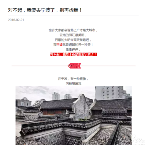 2月21日,大家的朋友圈纷纷被一条名为《对不起,我要去宁波了,别再找我!》的文章刷屏,短短24小时,阅读量突破了30万,留言超过500条。